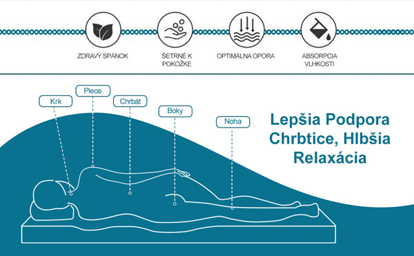 Pokročilá viaczónová konštrukcia znižuje zaťaženie bokov, ramien, chrbta a kĺbov pre lepšie nočné pohodlie