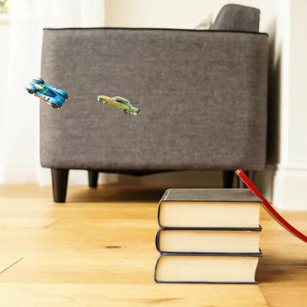 Môžete ju využiť na autíčka, ktoré už máte doma, ľahko ju pripevnite na okno alebo dvere, vyklopíte ju a začnete pretekať – poháňa ju len gravitácia, bez potreby batérií alebo nákladných doplnkov.